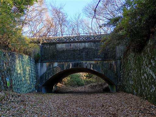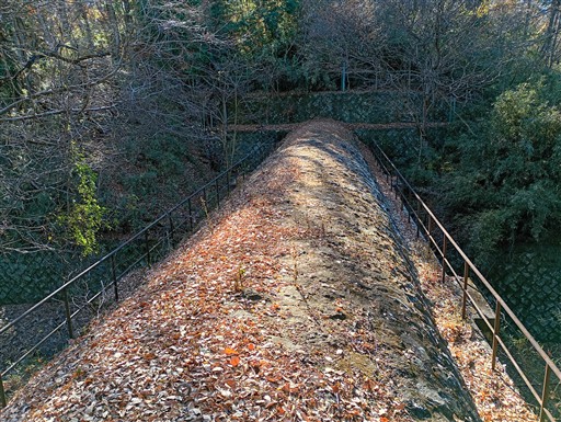 斜面を登ると橋の上部にでてくる。水道橋のようだが、正体は謎。