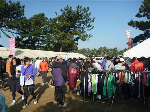 大会会場に到着。もうすでに多くの人が集まっている。適当な場所にシートを敷いて準備を行う。さすがに少し落ち着かない。それにしても今日は暑い。手袋などの防寒着は全く不要だ。これまで練習は仕事が終わった後の夜に行っていたため、寒いところで走るのは慣れているが、暑さには慣れていない。練習のときより体力を消耗しそうだ。