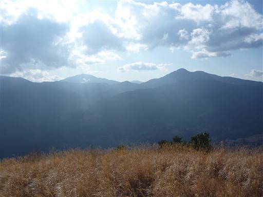 暗い植林地帯の道を下っていくと、突然明るく展望が開ける。